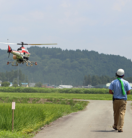 産業用無人産業ヘリコプターを使って、水田の稲に農薬散布をするオペレーターを募集しています。
